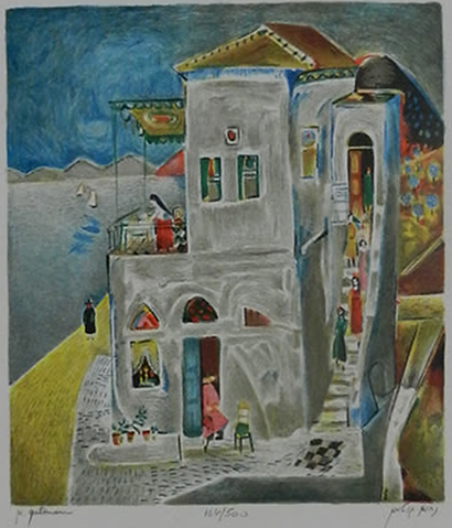 נחום גוטמן - סימטה בצפת  ליטוגרפיה חתומה